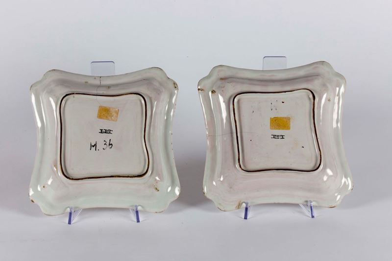 Coppia di piatti quadrangolari Ungheria, Holitsch, seconda metà del XVIII secolo