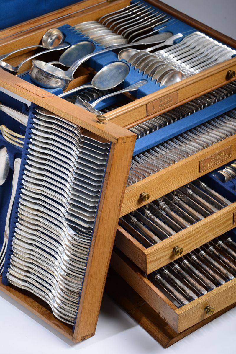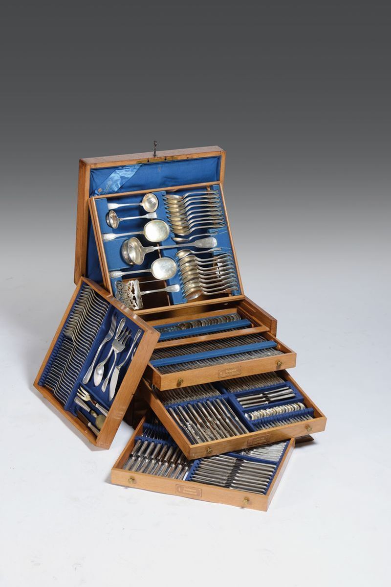 Servito di posate in argento composto da 277 pezzi, Germania XIX secolo, orafo Gebr Friedlander