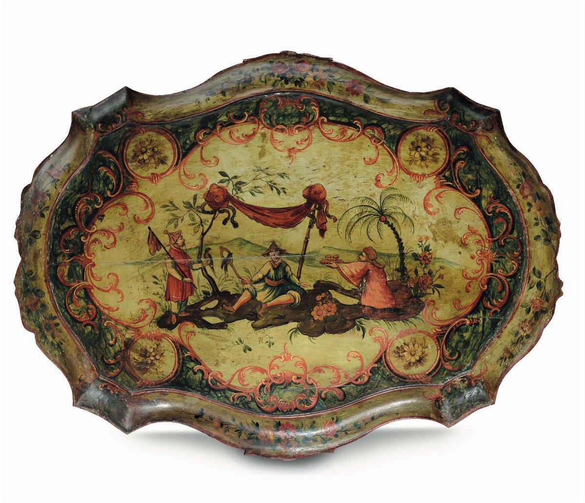 Vassoio sagomato laccato in policromia, Venezia XIX secolo