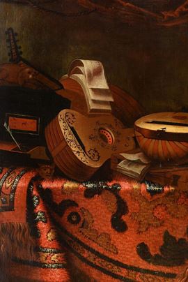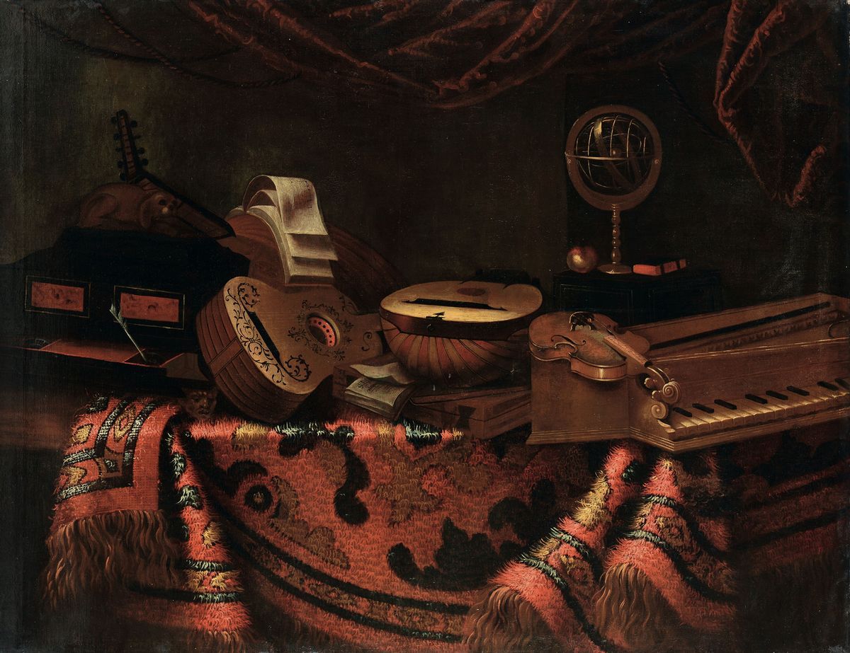 Natura morta con tappeto e strumenti musicali