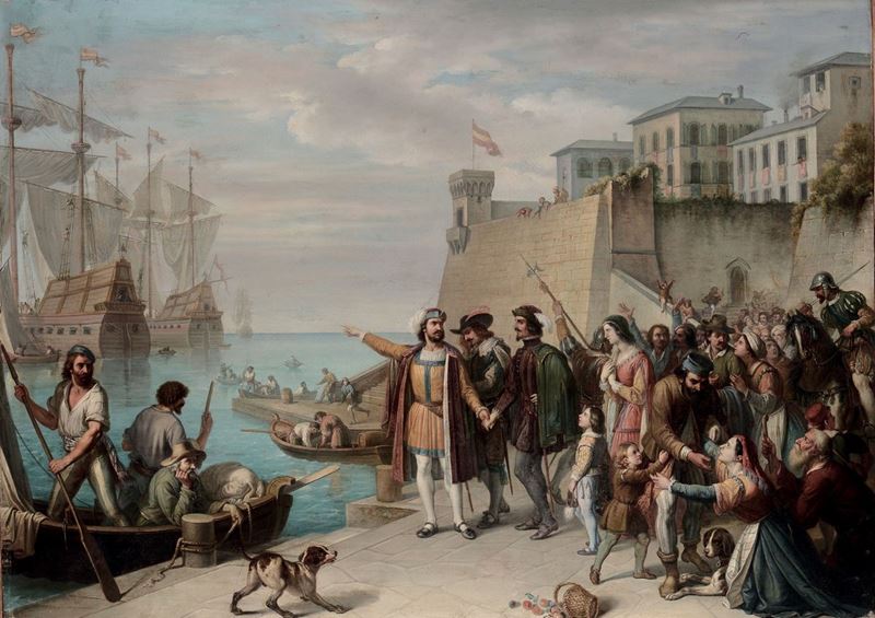 Pittore del XIX secolo Partenza di Cristoforo Colombo