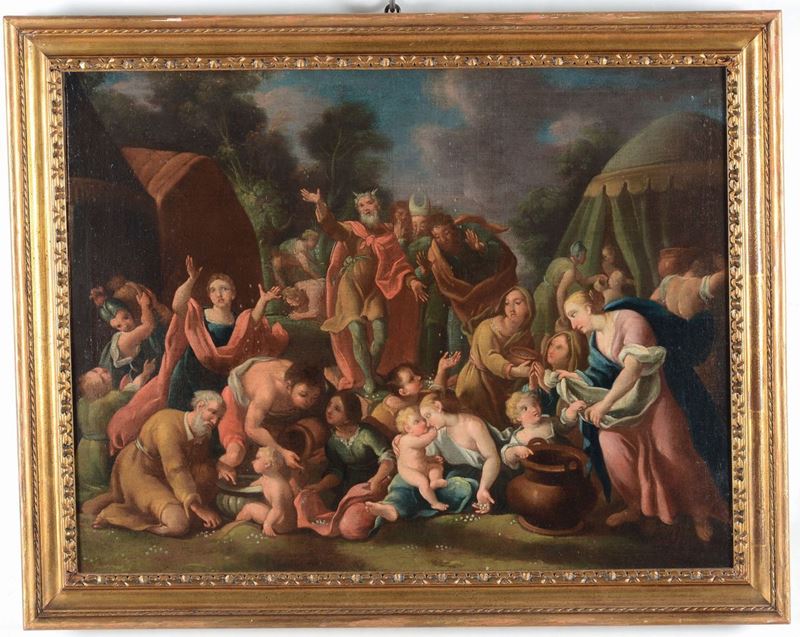 Scuola Italiana del XVIII secolo Predica di San Giiovanni La caduta della manna