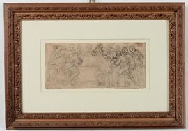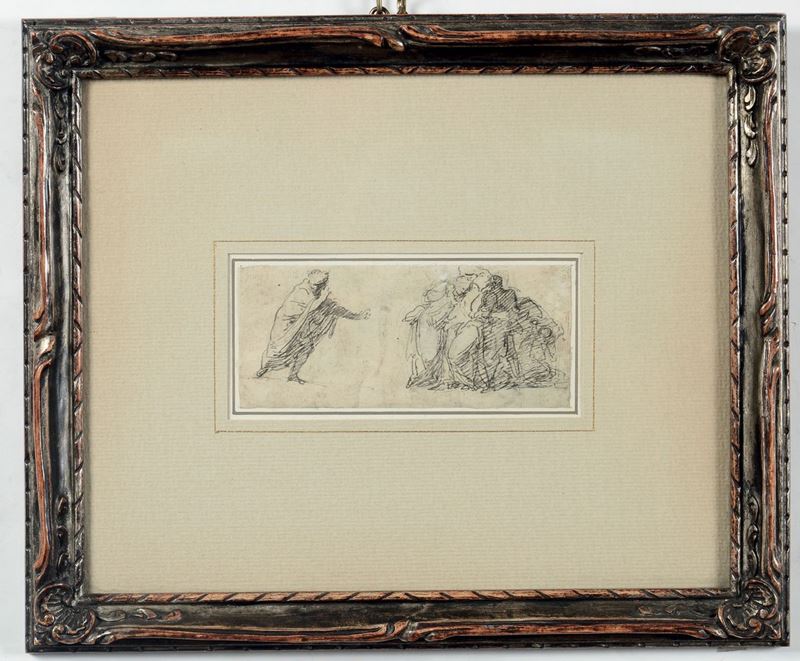 tecnica mista su carta, mm 110x240del lotto fa parte anche uno Studio di figure, china su carta, mm 60x145 di scuola Italiana del XVIII secolo