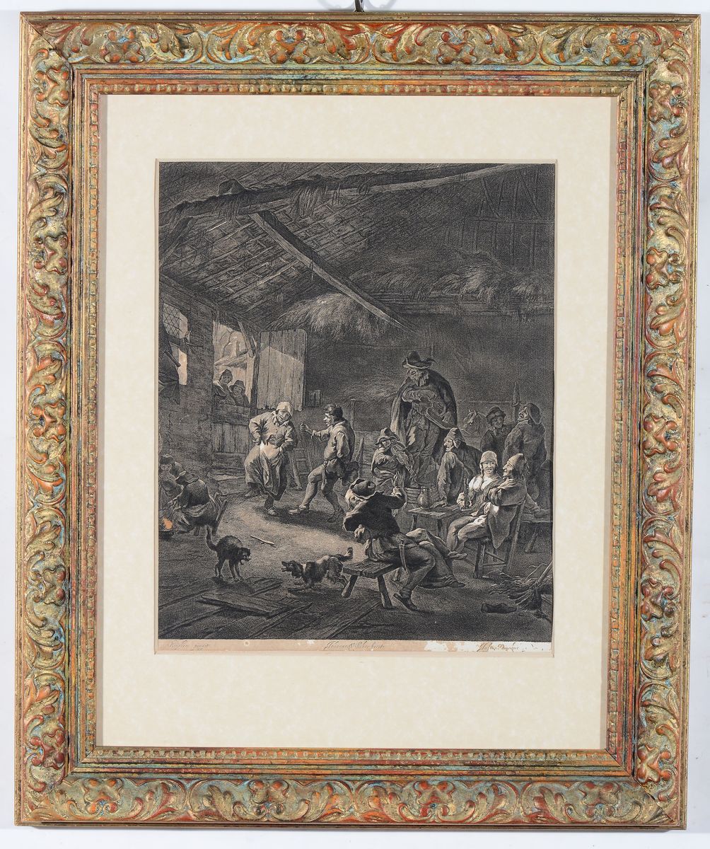 tempera su carta applicata su tela, cm 47x38, entro cornice dorata coeva; nel lotto anche incisione di analogo soggetto cm 45x36