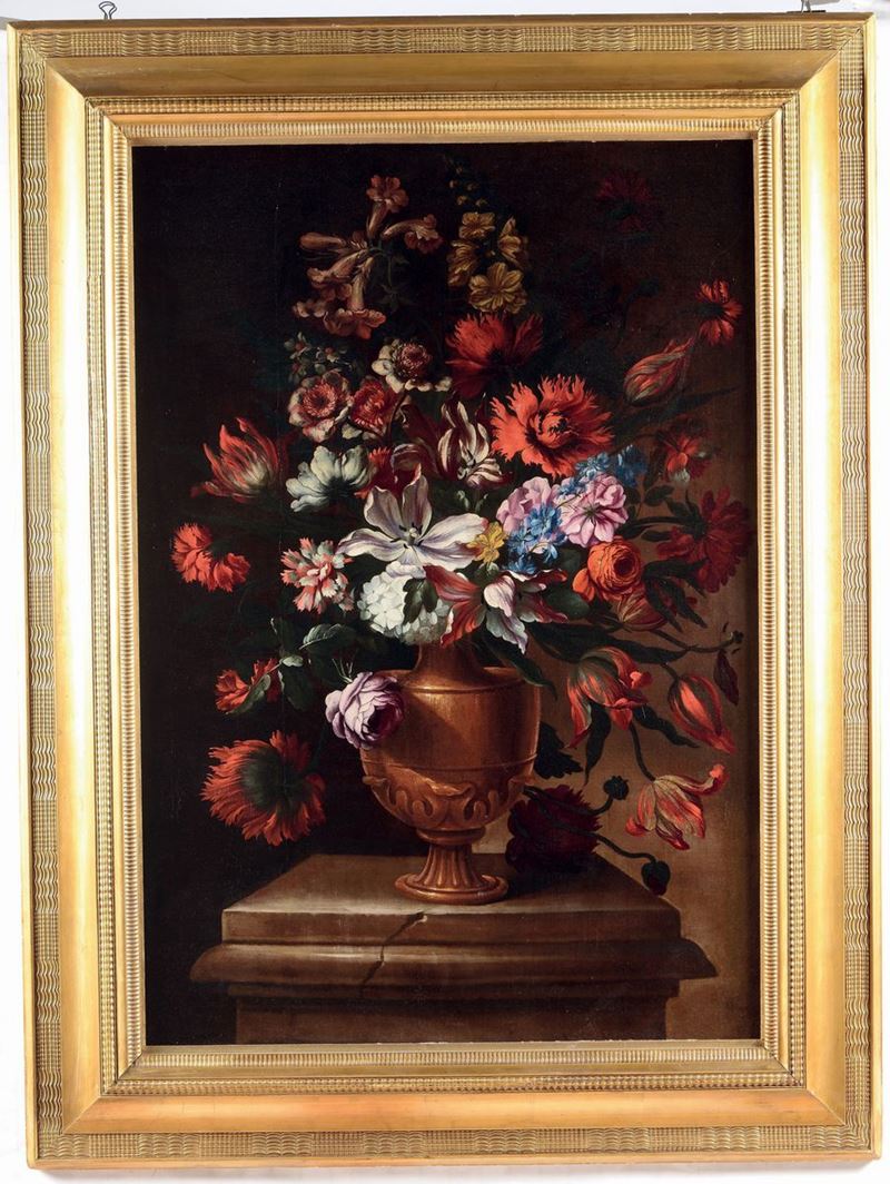 Scuola Romana del XVIII secolo Natura morta con vaso di fiori
