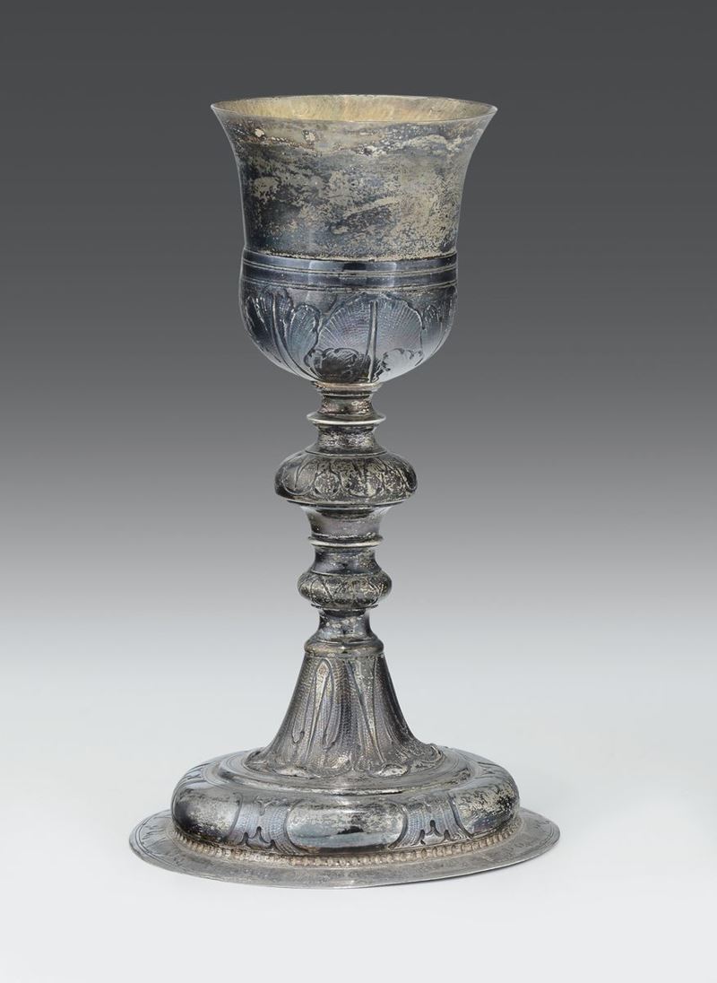 Calice in argento fuso, sbalzato e cesellato, Genova inizi XVIII secolo, punzone della Torretta per l’anno (1)720