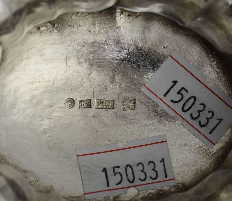 Cestino in argento fuso, sbalzato, cesellato e dorato, Russia XIX Secolo, città di San Pietroburgo 1840, Saggiatore Dmistrii [..]