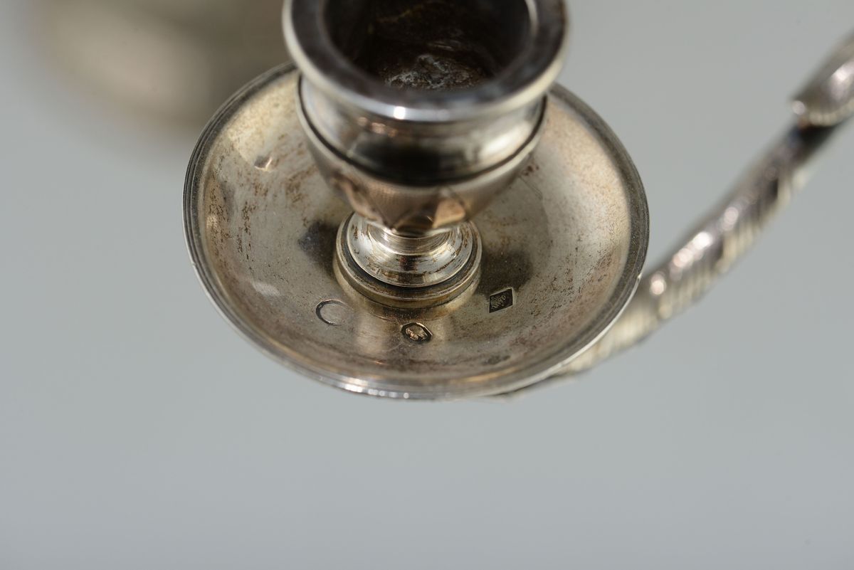 Coppia di doppieri in argento fuso, sbalzato e cesellato, Firenze XIX secolo, punzoni dioccupazione francese in uso dal [..]