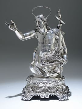 Scultura raffigurante San Giovanni Battista in argento fuso, sbalzato e cesellato, Napoli XIX secolo, punzone di titolo [..]