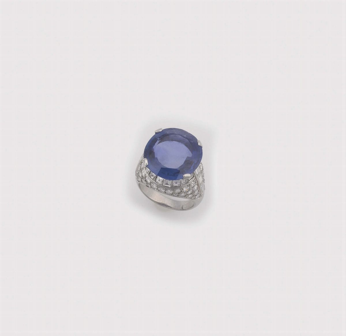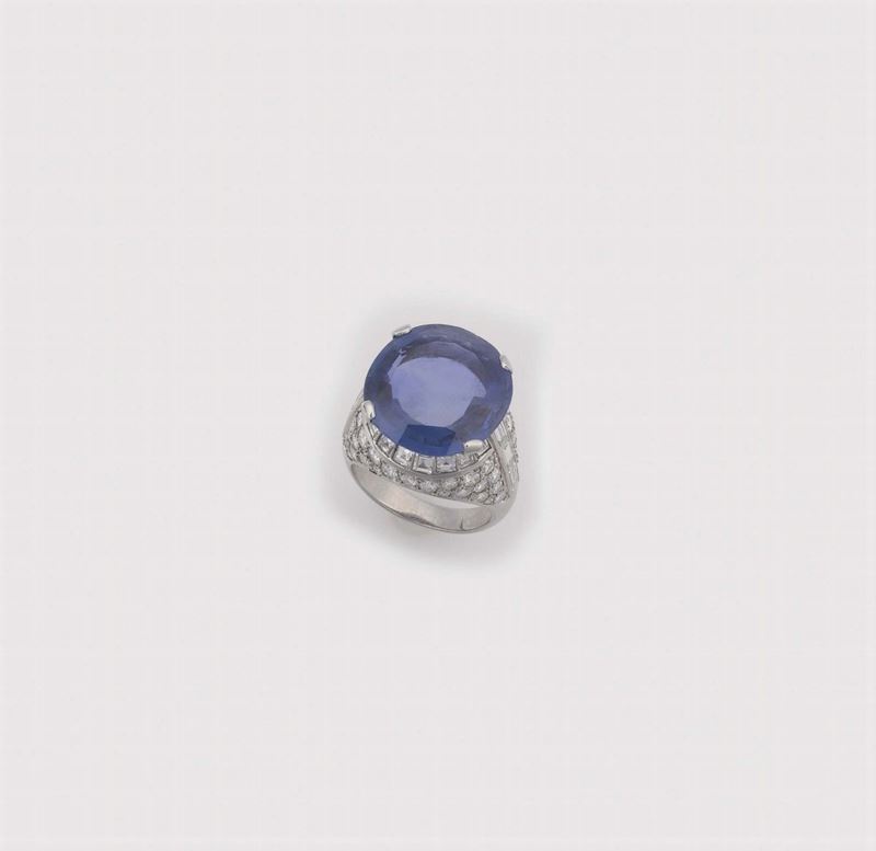 A sapphire, diamond and platinum ring