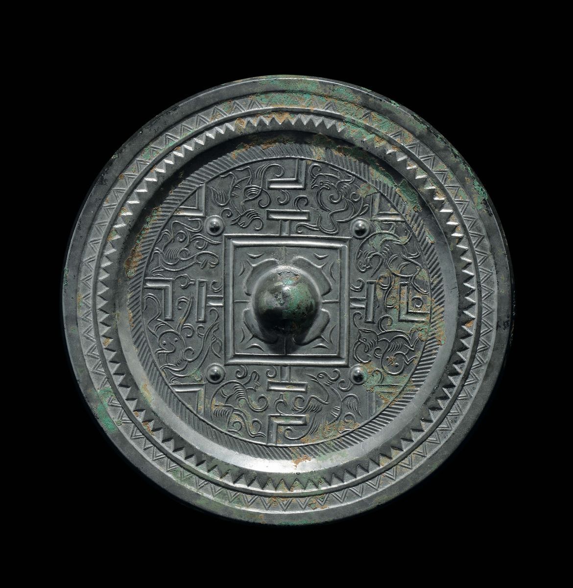 A bronze Bo Ju mirror with central boss, China, Han Dynasty (206 b.C-220 a.C.)