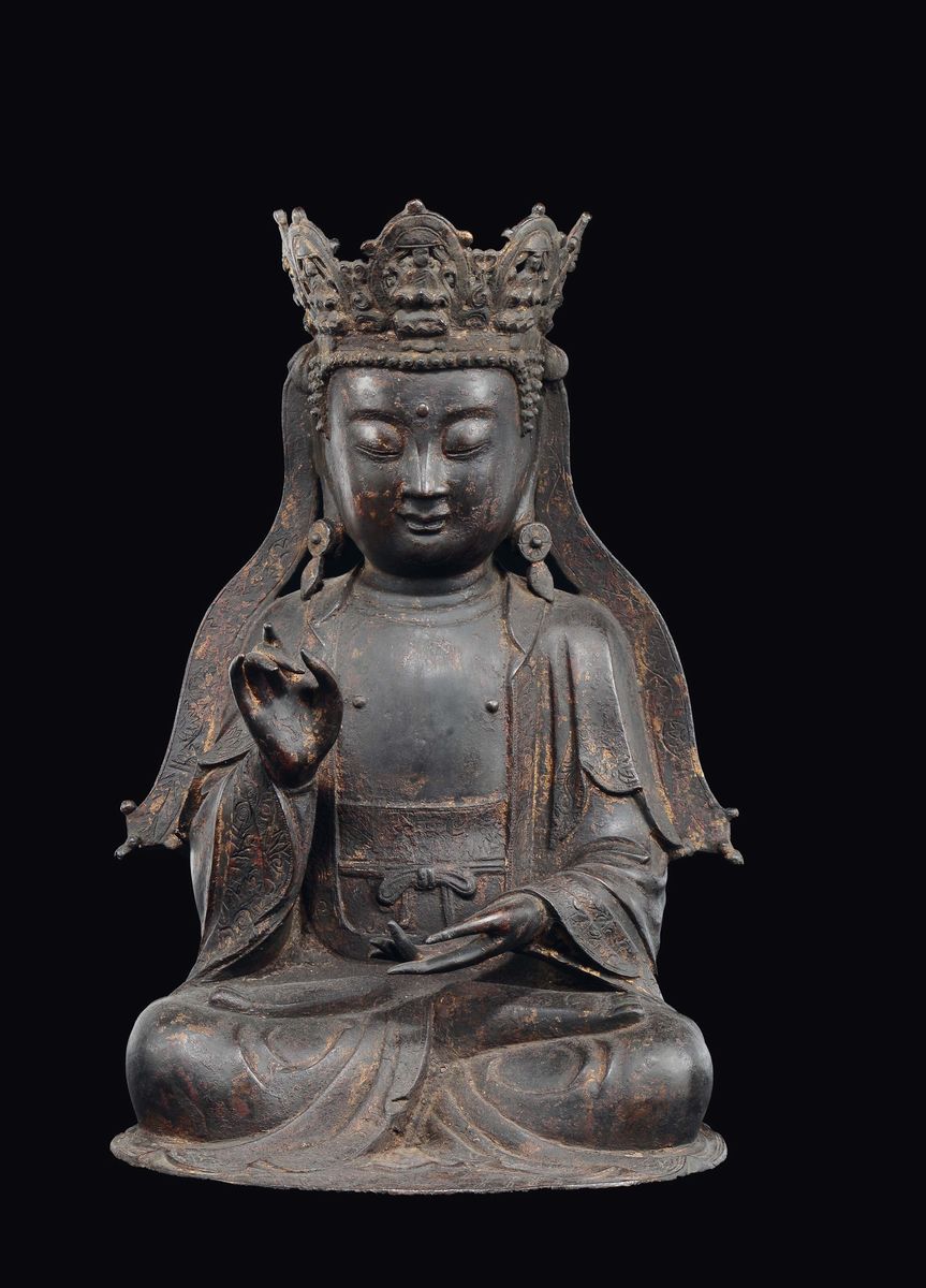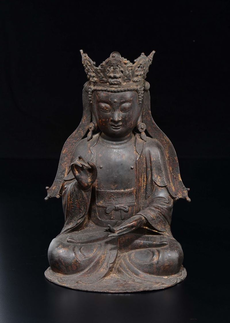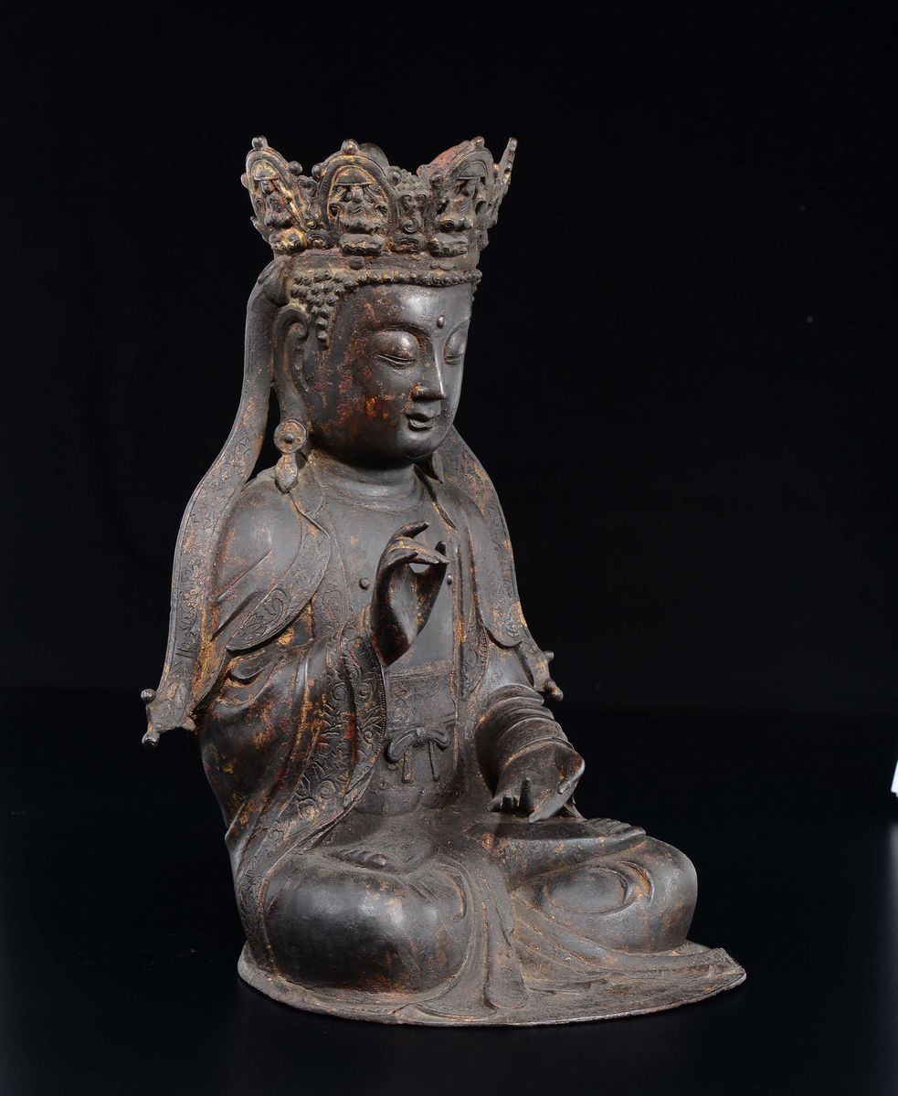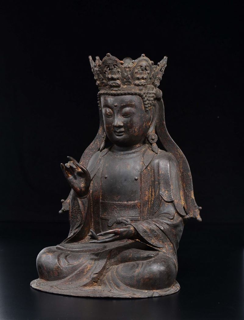A bronze figure of crowned Buddha, China, Ming Dynasty, 17th century
