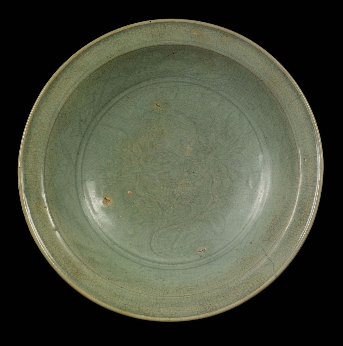 A Celadon craquelé porcelain dish, China, Ming Dynasty, 16th century