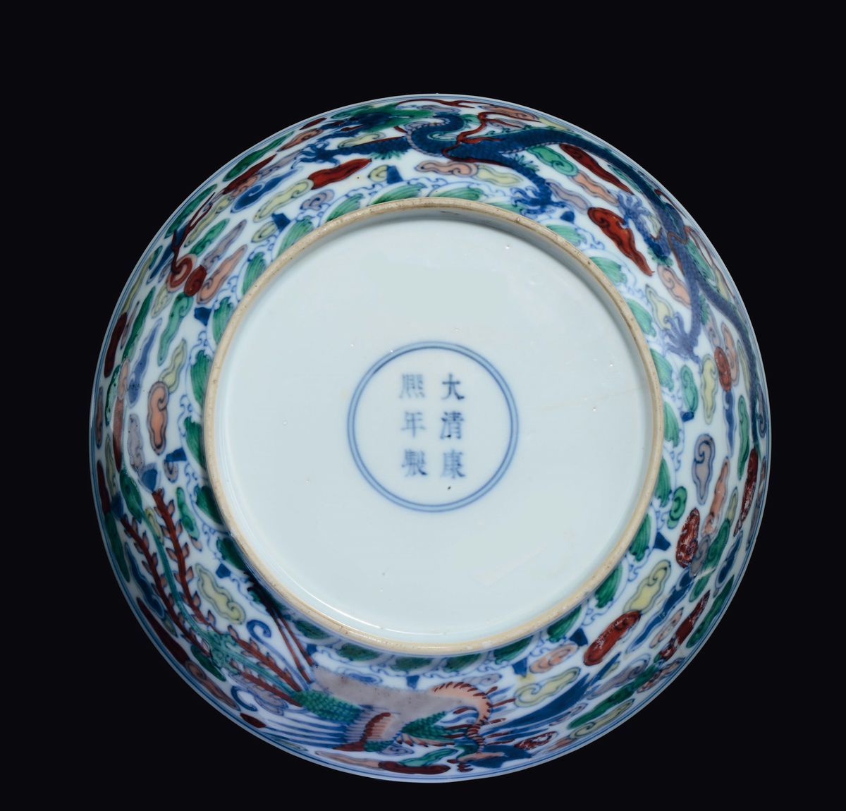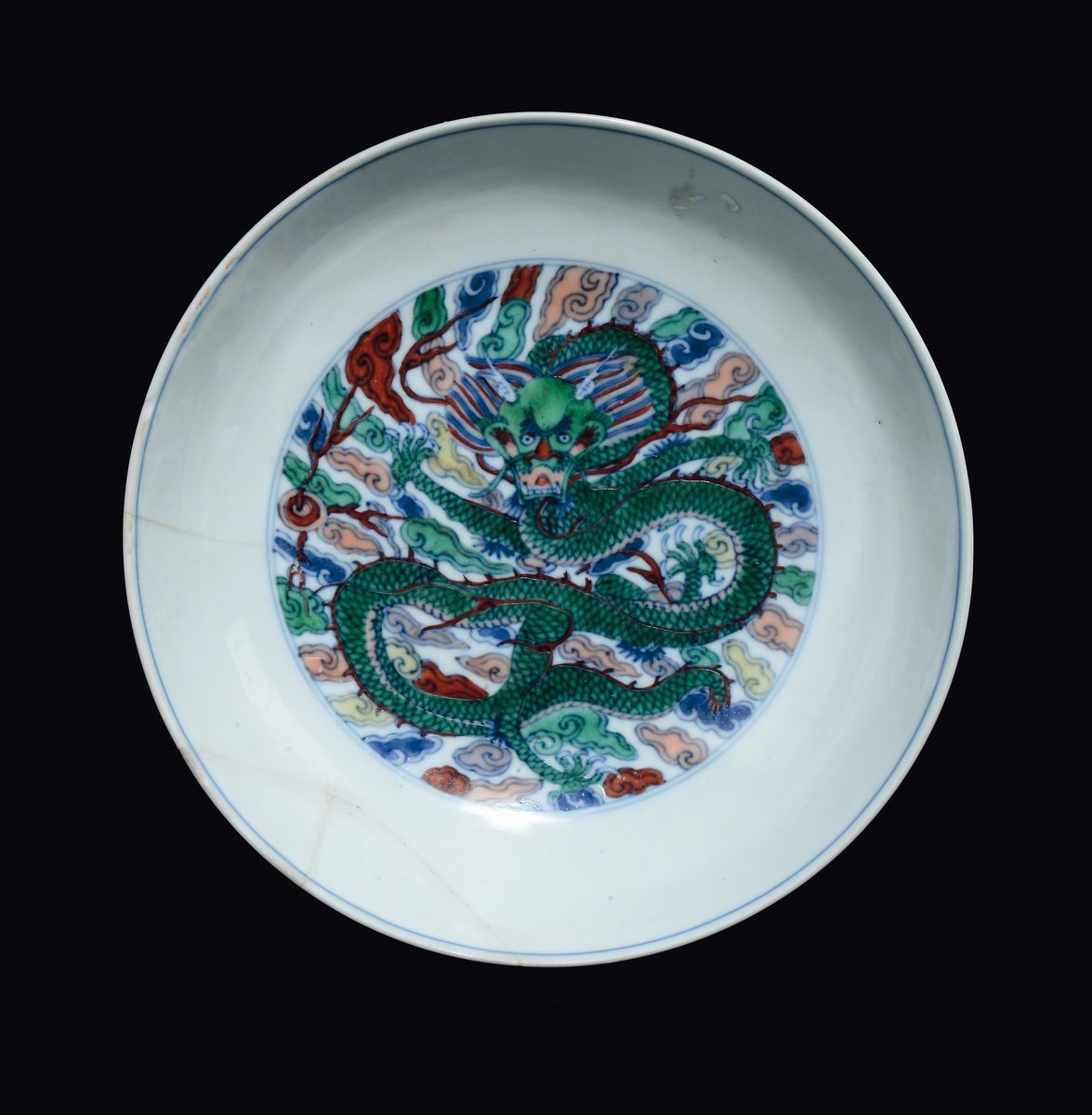 A Ducai porcelain dish with dragon, China, Qing Dynasty, Kangxi Mark and of the Period (1662-1722)