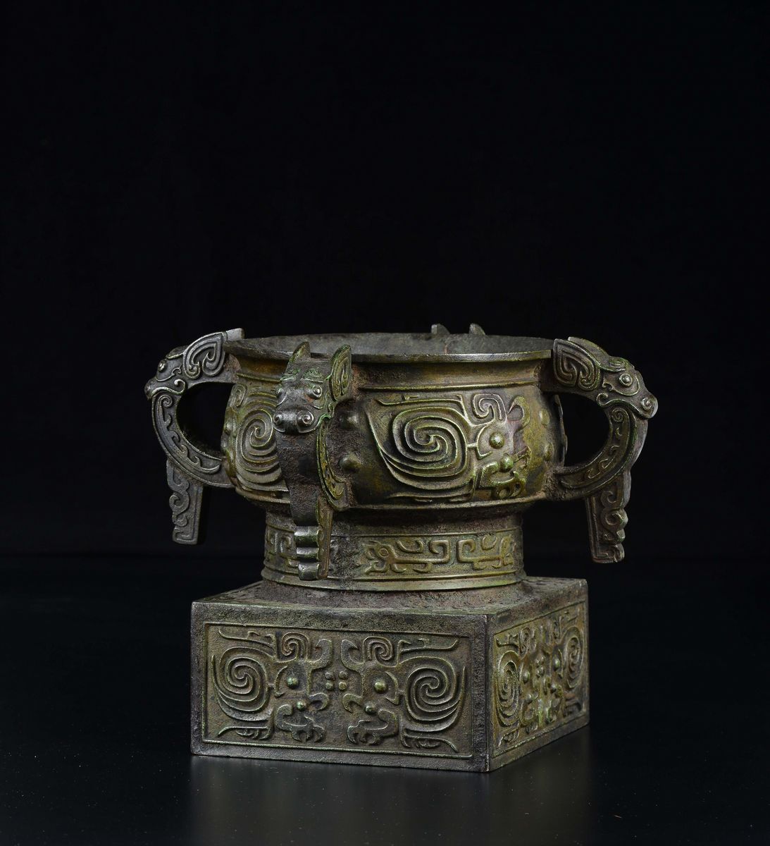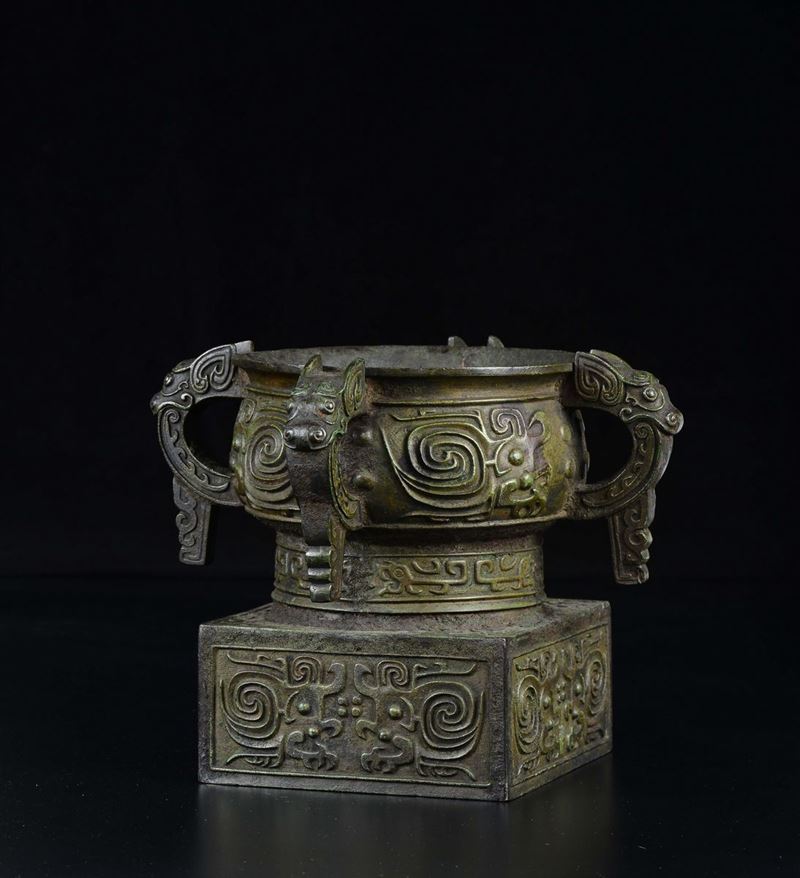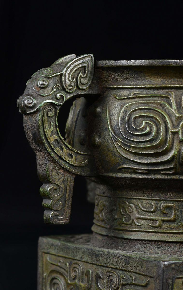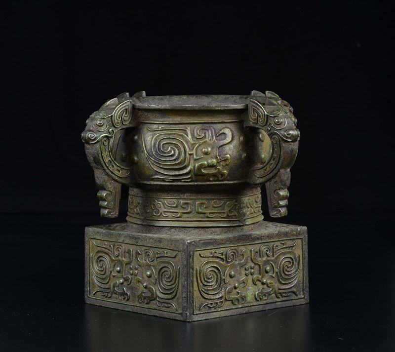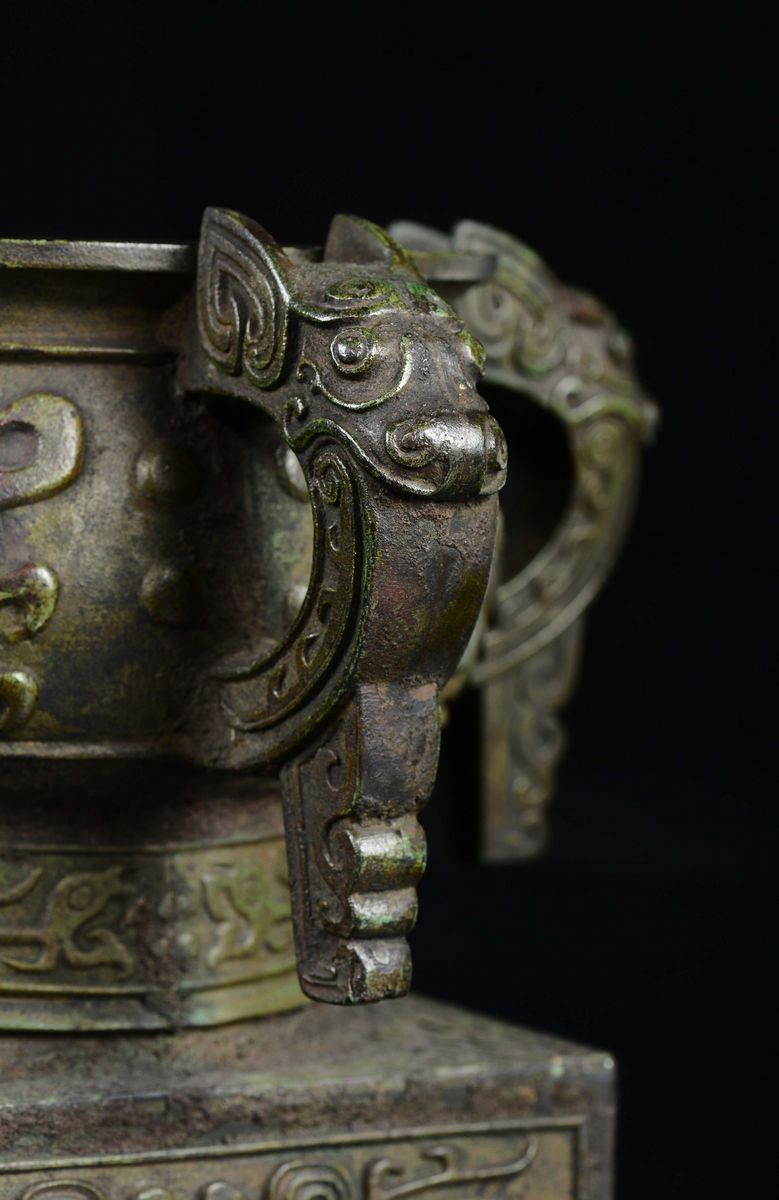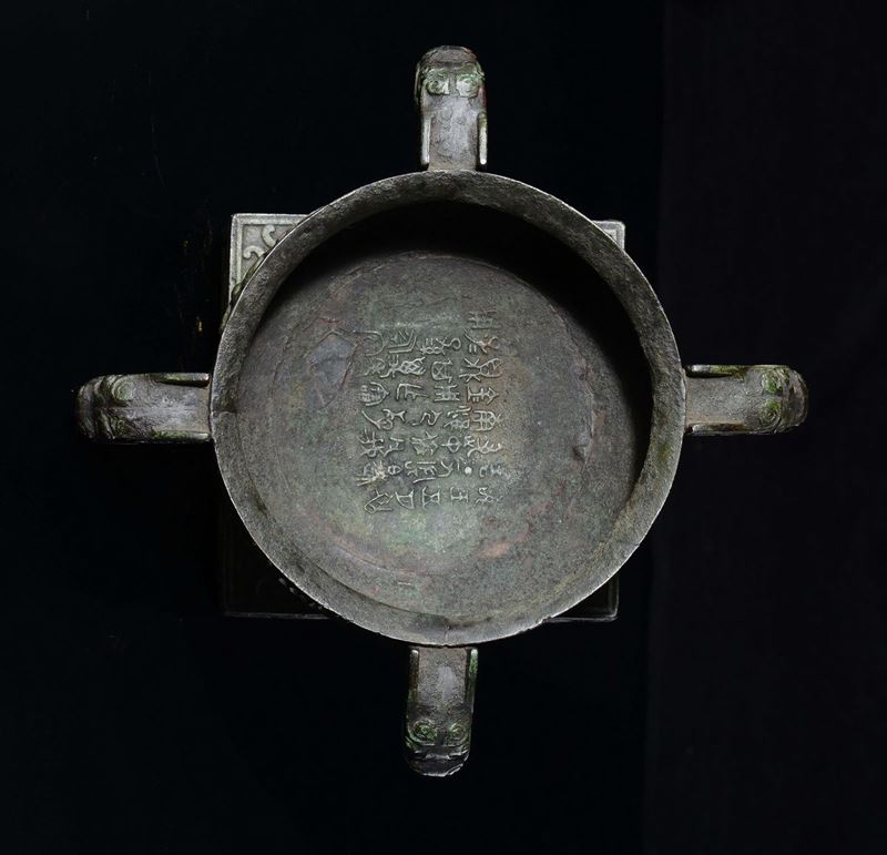 A four-handeled bronze censer with inscription inside, China, Ming Dynasty, 17th century