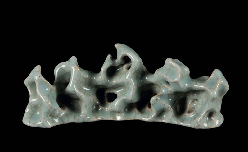 A green craquelè porcelain brush holder, China, Qing Dynasty, Daoguang Period (1821-1850)