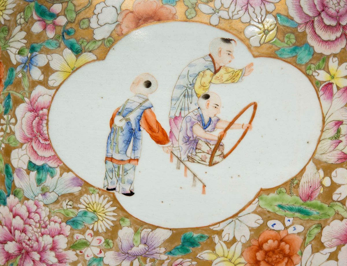 A large Famille-Rose porcelain vase depicting playing children within reserves, China, Qing Dynasty, Guangxu Period (1875 [..]