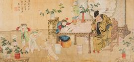 A painting on paper depicting wise man with children and inscription with Jiao Bingzhen' signature, China, Qing Dynasty, [..]