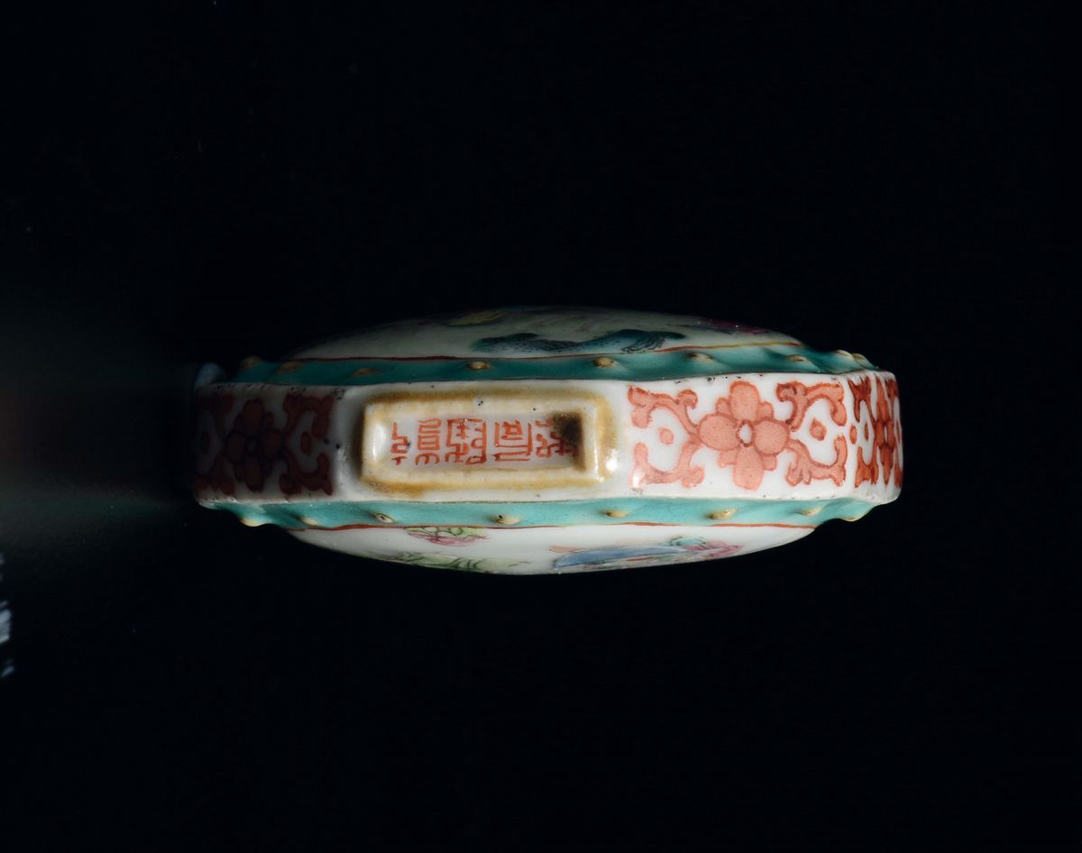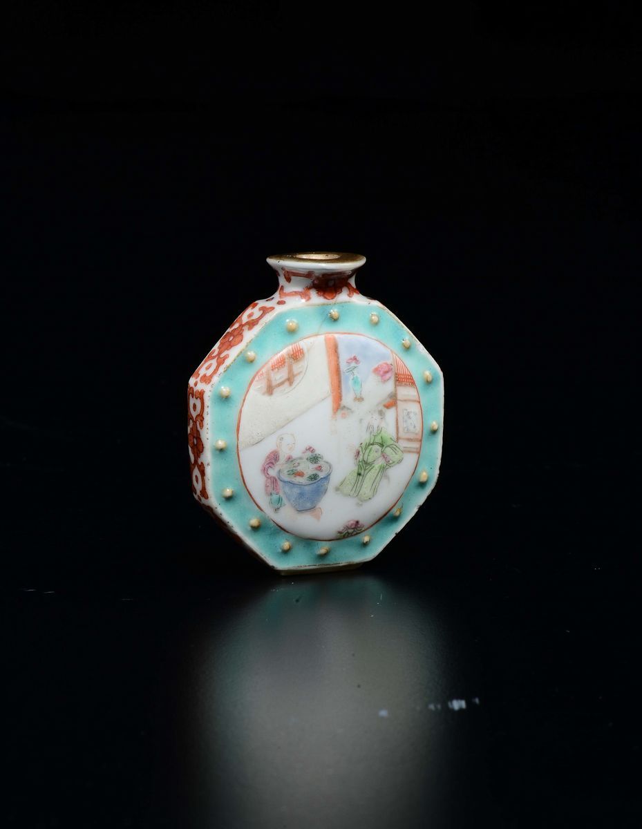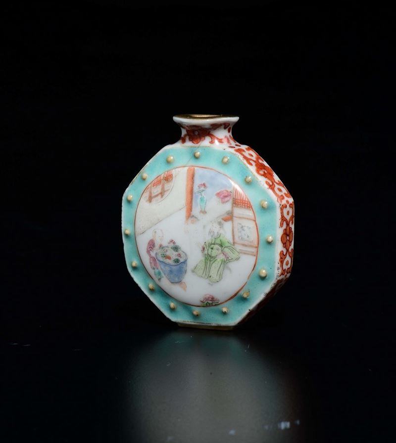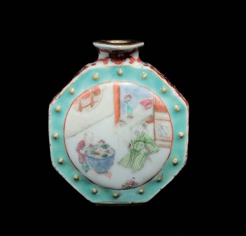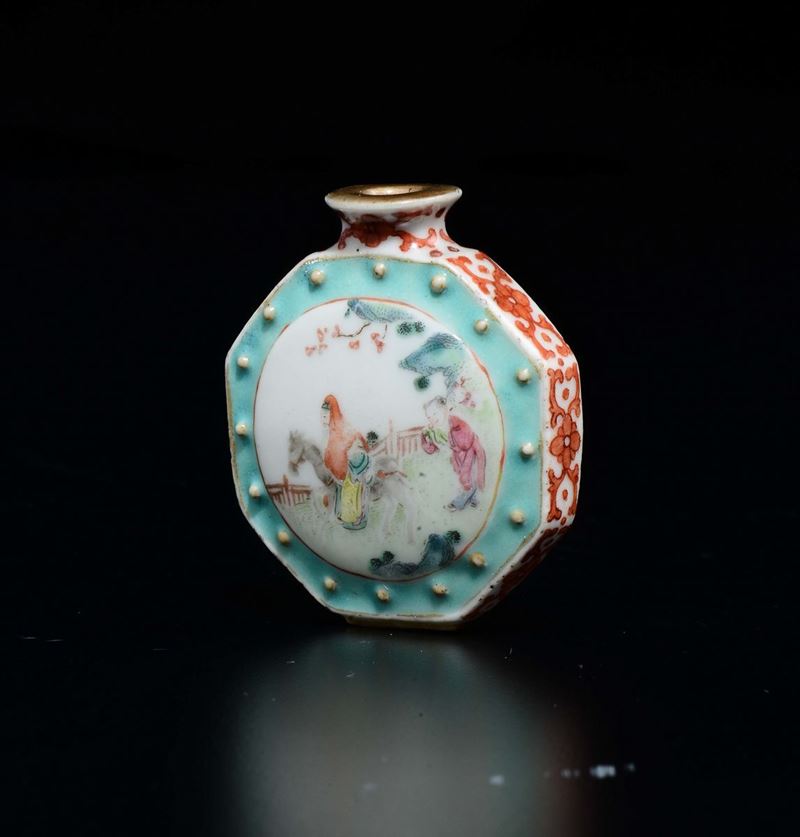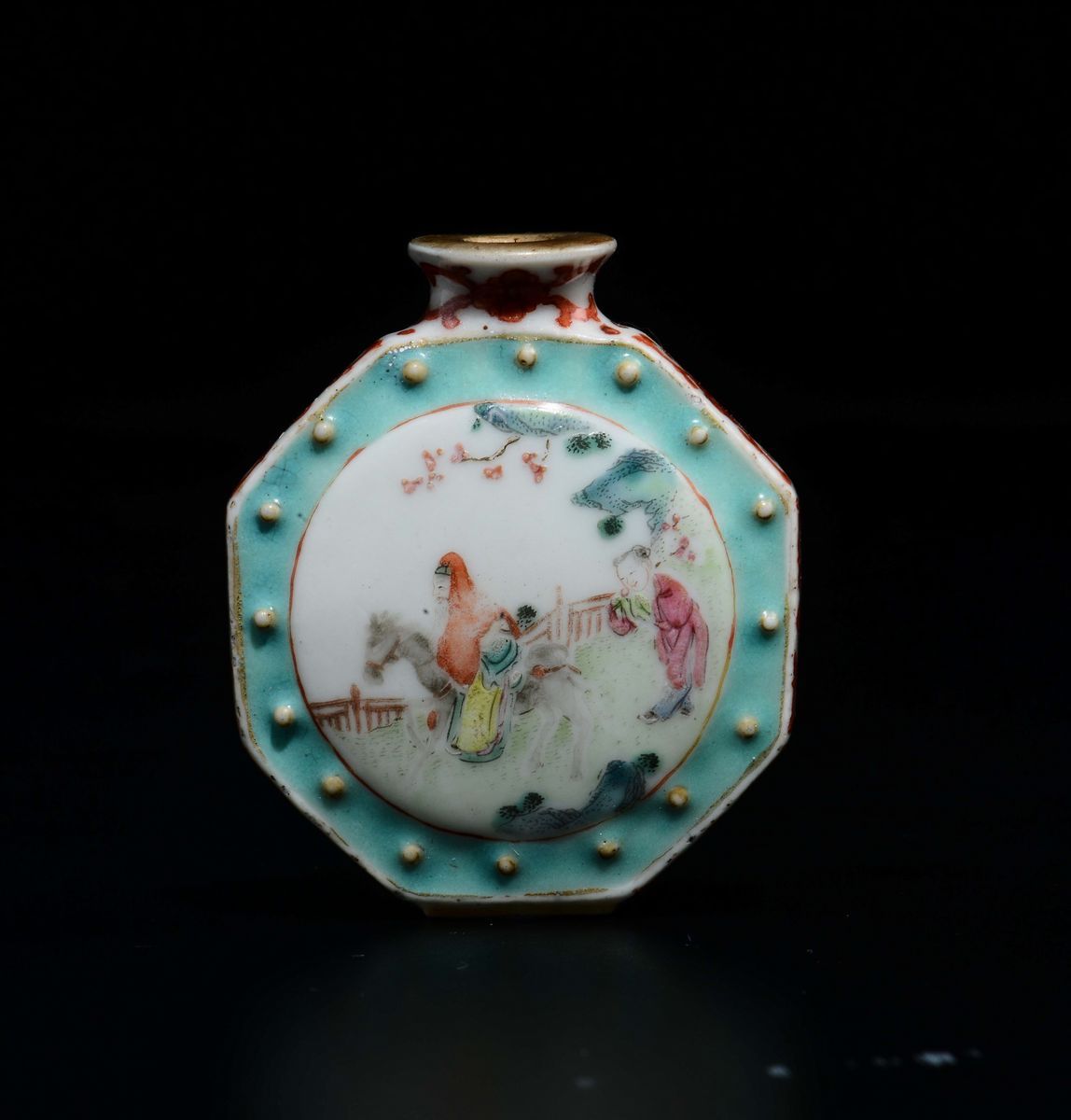 A porcelain snuff bottle depicting wise man and children, China, Qing Dynasty, 19th century