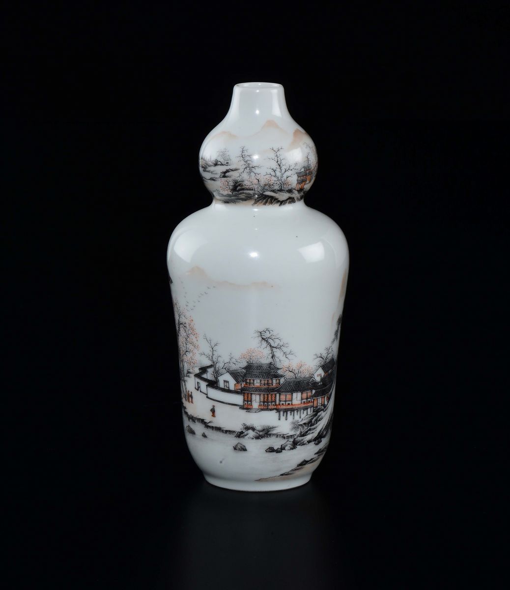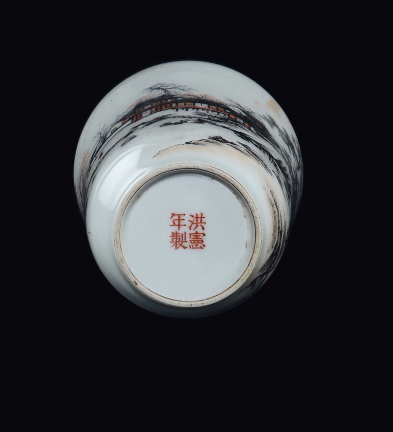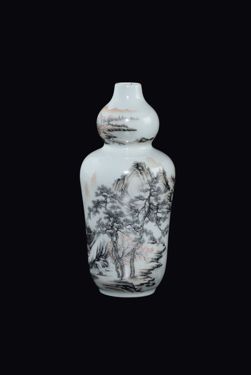 A small polychrome enamelled porcelain vase depicting mountain landscape, China, 20th century