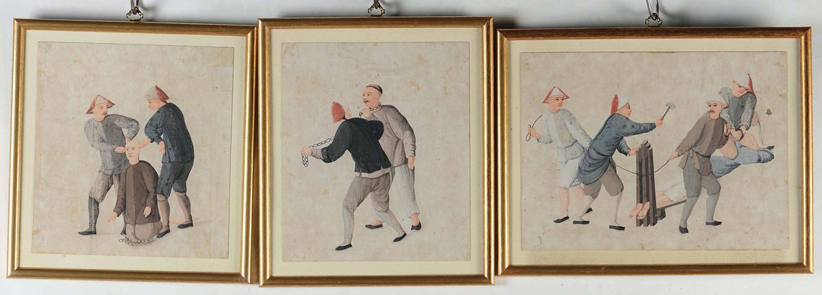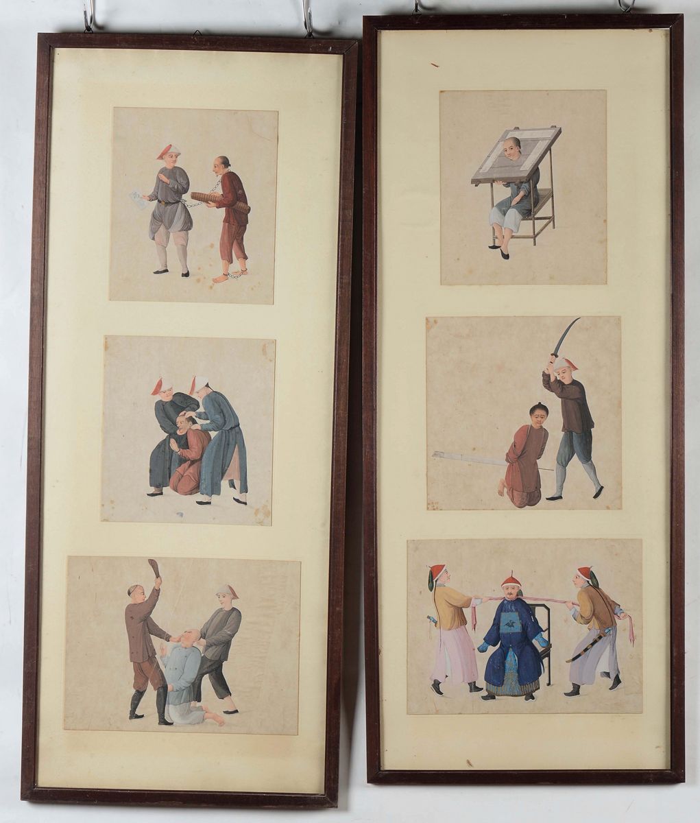 Nine paintings on paper depicting torture or execution scenes, China, Qing Dynasty, 19th century
