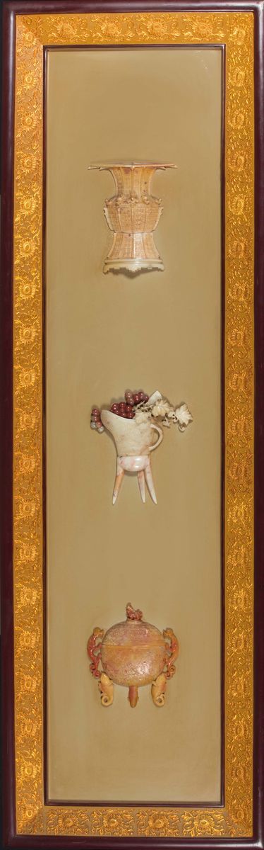 Two soapstone screens with inlays depicting censers and flowerpots, China, Qing Dynasty, 19th century