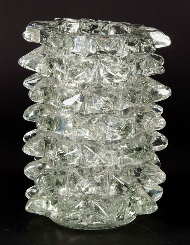 A large Rostrati series vase in transparent glass with pointed decoration. Grinding on the upper rim. 33 cm high; diameter cm 24,5