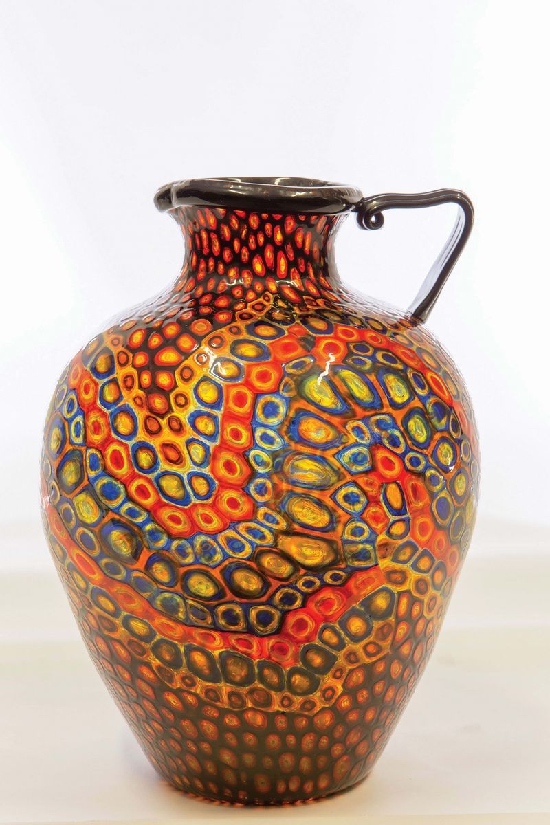 This vase is part of a rare series of vases decorated with murrines of which only a few examples are known. To compare see Catalogo d’asta Vetri Italiani, Stadion, Milan, 18 March 1999, lot number 161