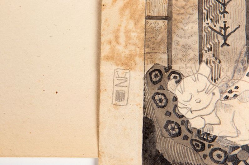 Signature in the scroll and inscription Mustafà riposa (Mustafa rests)