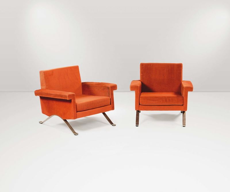 Salotto composto da un divano e due poltrone mod. 875 con struttura in metallo e rivestimento in tessuto.Prod. Cassina, Italia, 1961cm Divano 195x67x71; cm Poltrone 79x67x71