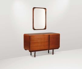 Cassettiera in legno e specchiera con cornice in legno.Prod. Italia, 1960 ca.cm. 137x55x88