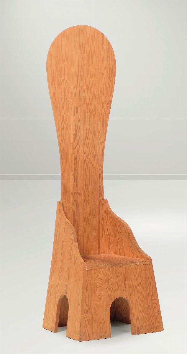 Seduta Sedia Alta della serie Mobili nella Valle in legno di abete massello grezzo. Timbro originale. Prod. Poltronova, Italia, 1972cm 60x188x50,5