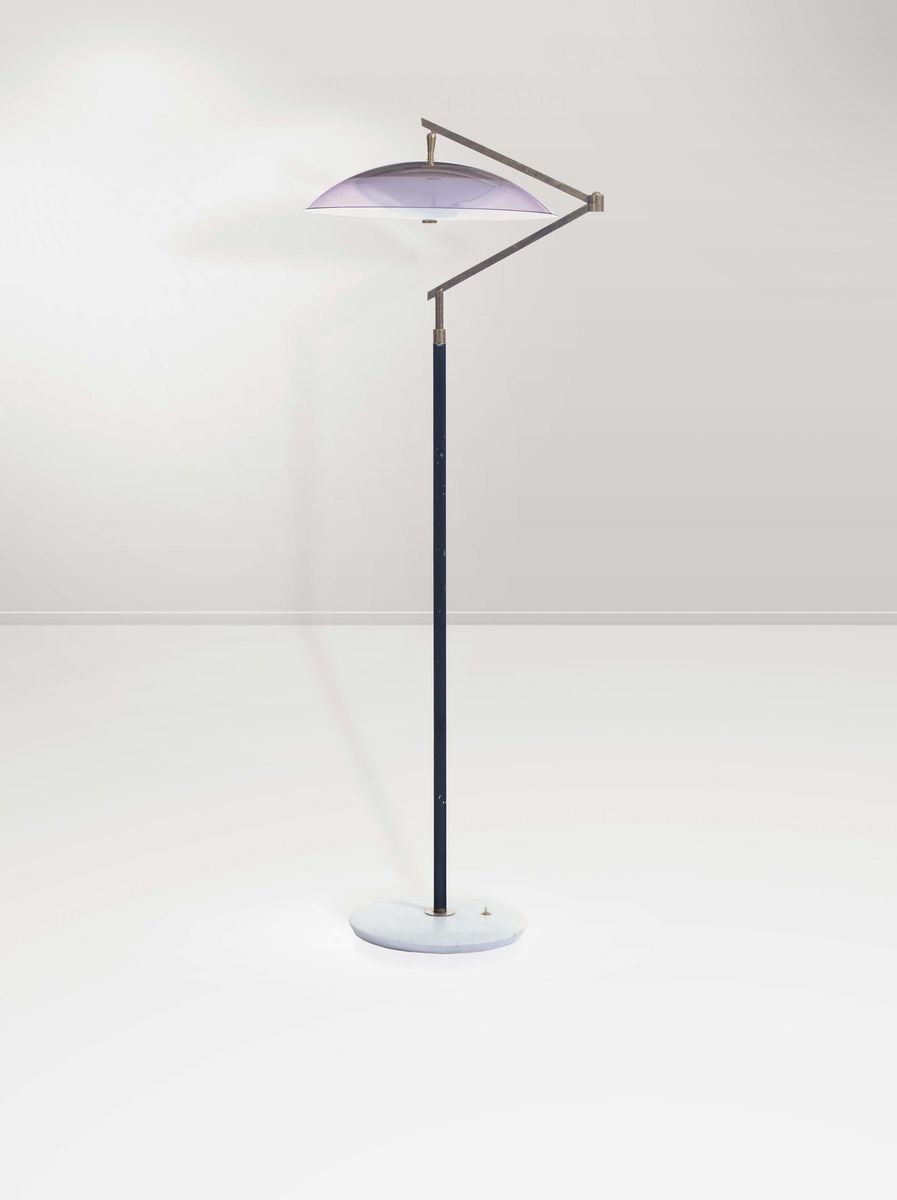 Lampada da terra con base in marmo, struttura in ottone e metallo verniciato e diffusore in perspex. Prod. Stilux, Italia, 1950 ca.cm. 160