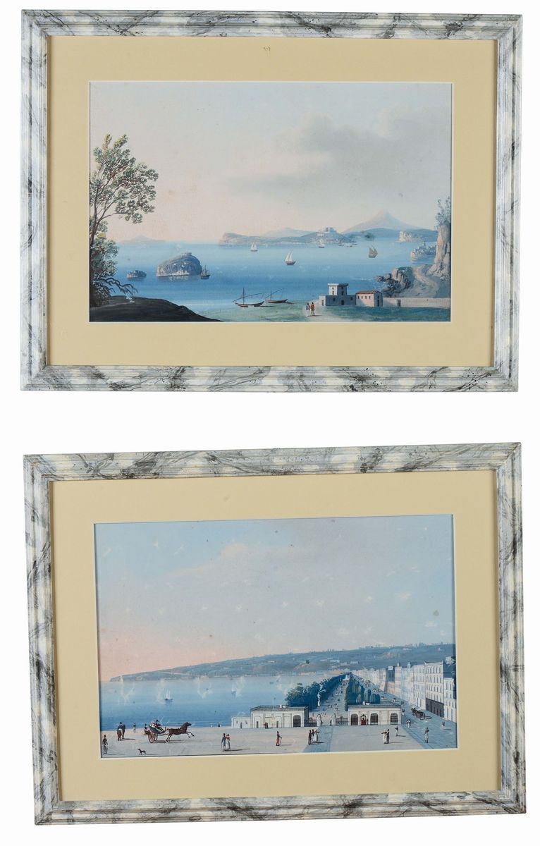 sei gouaches su carta, cm 25x40 (una di misure leggermente diverse)