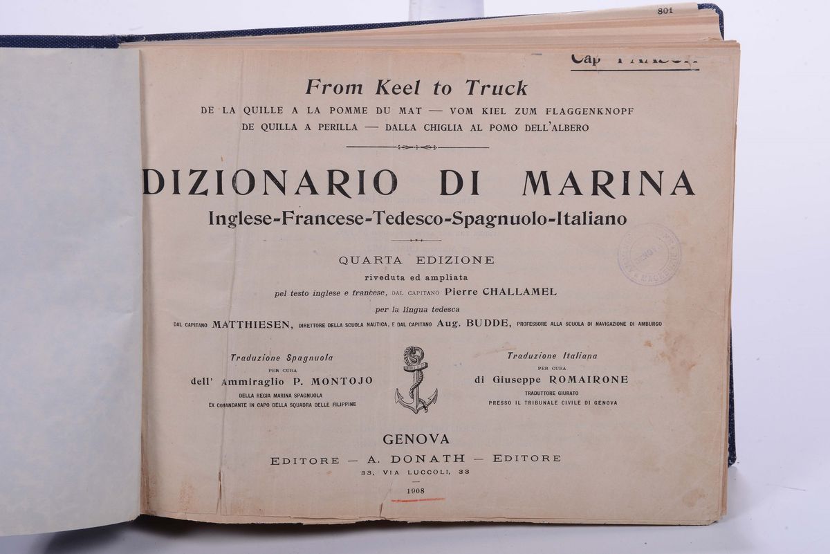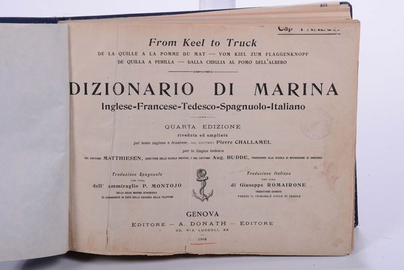 Dizionario di Marina”, Inglese, Francese, tedesco,Spagnolo, Italiano