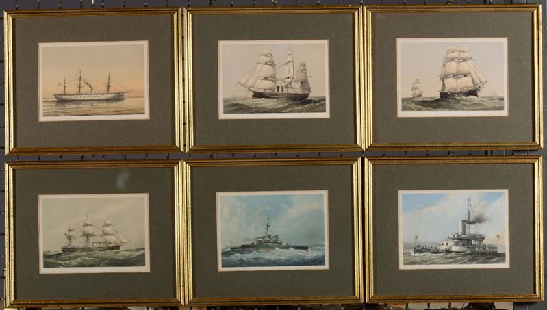 Lotto di quattordici stampe con ritratti di imbarcazioni