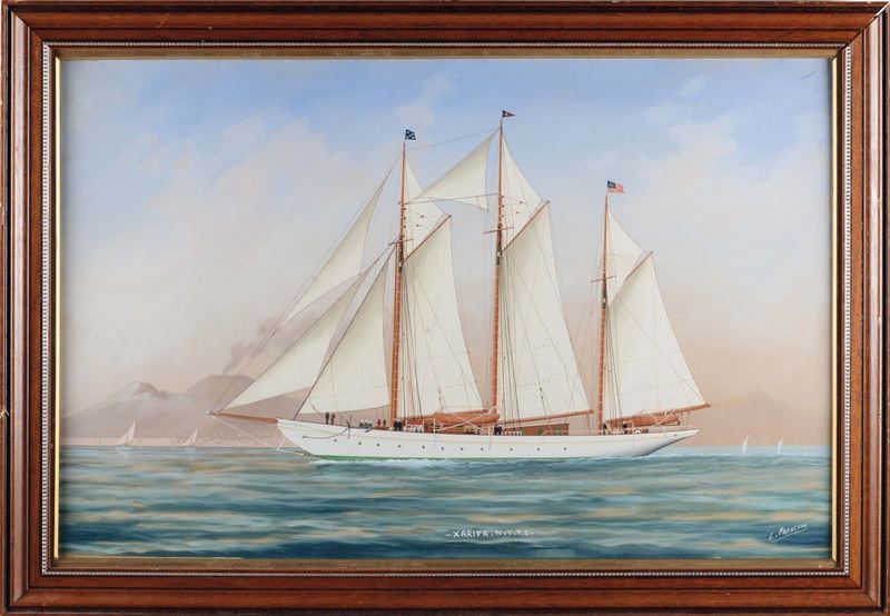 Luca Papaluca (1892-1934) Ritratto N.Y.Y.C Xarifa in navigazione nel golfo di Napoli e in mare aperto