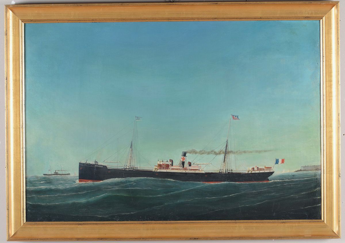 Marie-Edouard Adam (1847-1929), attribuito a Ritratto del piroscafo “Boteldieu” in navigazione