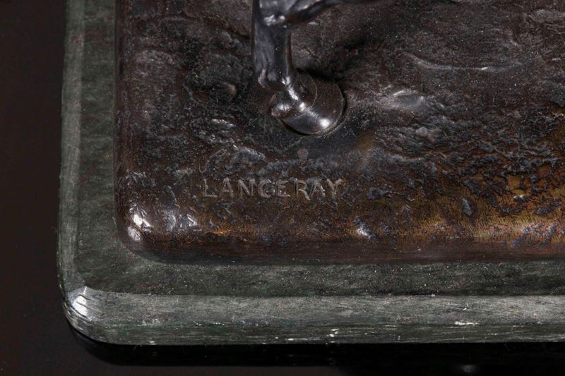 bronzo a cera persa, cm 27x30x10firmato : Lanceraybase rettangolare in marmo