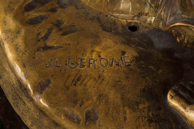 bronzo a cera persa dorato, cm 52x30x20firmato : JL Gerome con marchio di fonderia