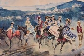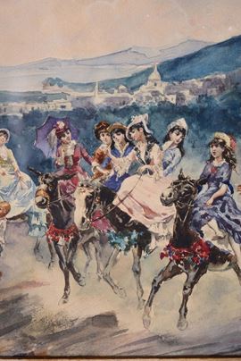 acquarello su carta, cm 26x18, firmato e datato 1887 in basso a destra