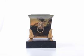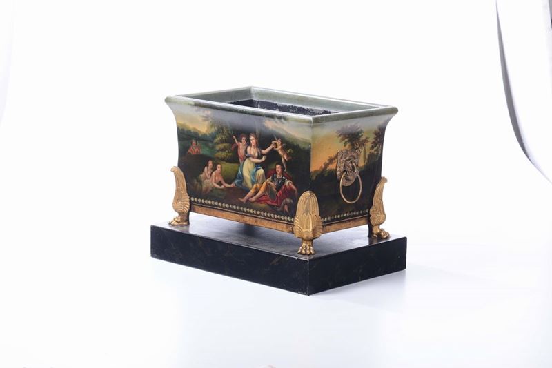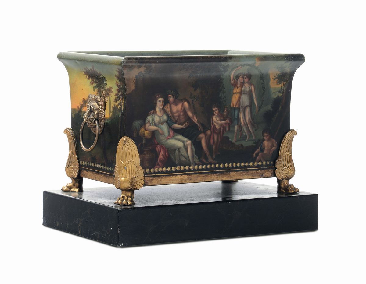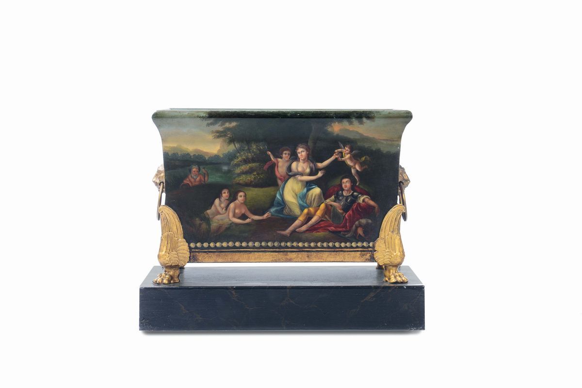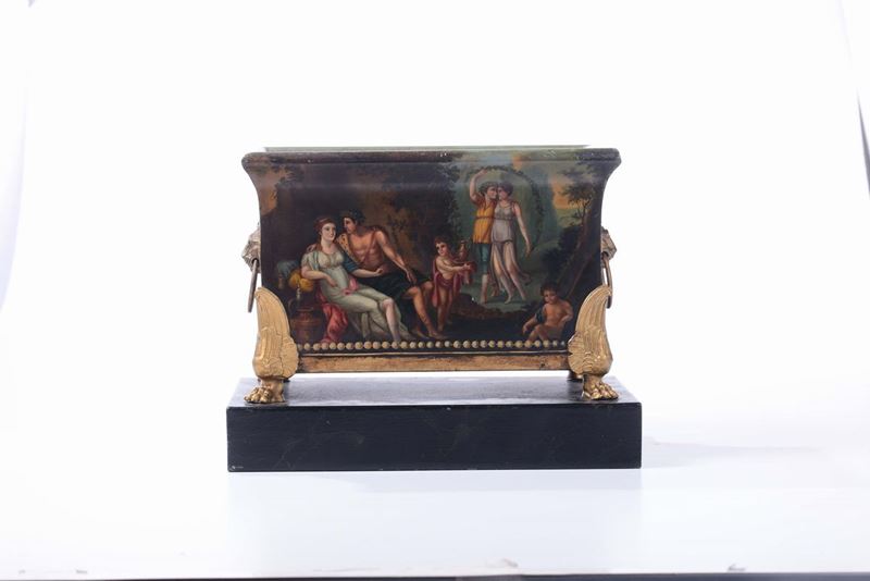 Cachepot con scena mitologica in legno dipinto, Francia, XIX secolo