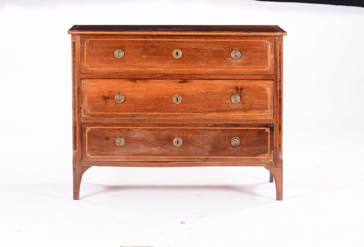 Cassettone genovese in noce lastronato ed intarsiato, XIX secolo