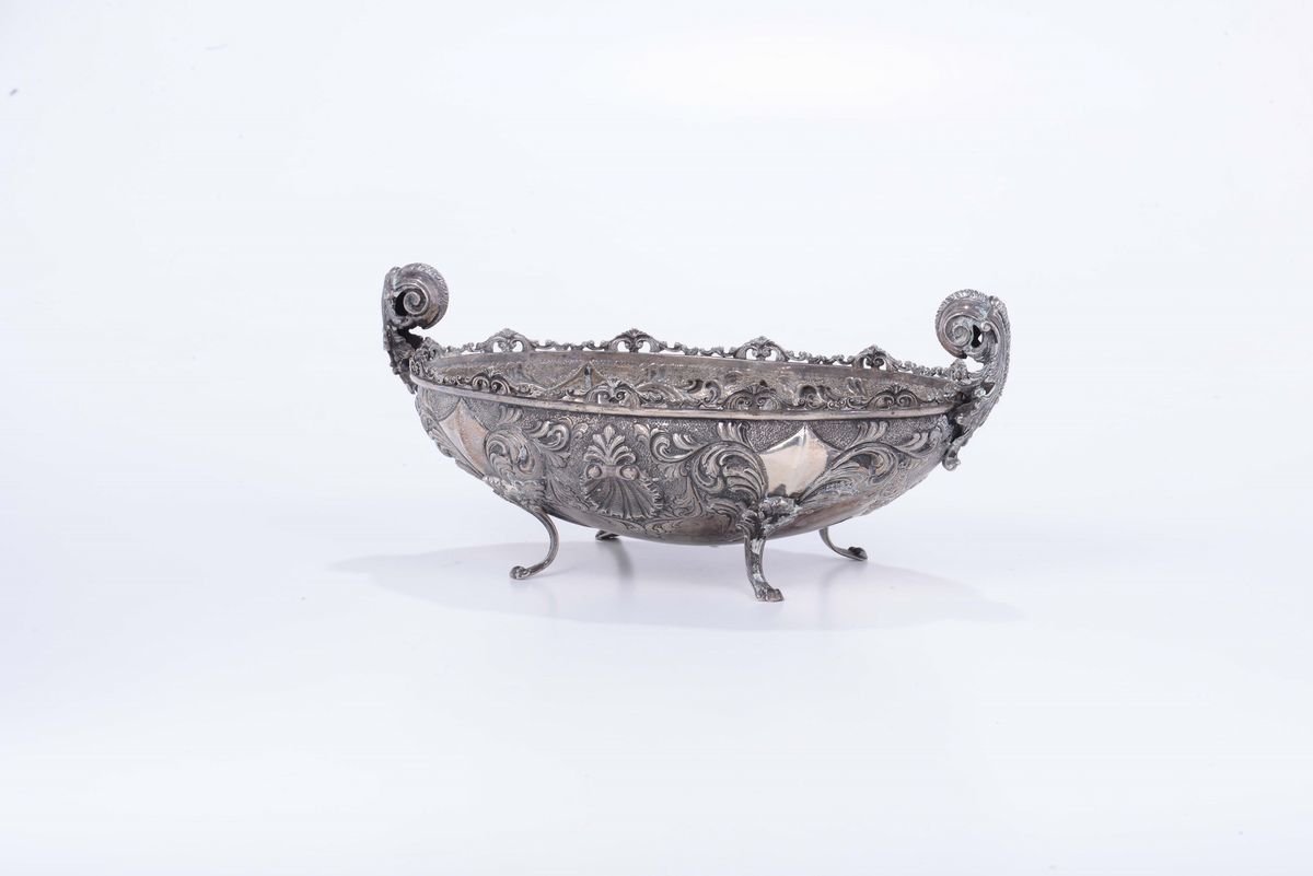 Centrotavola in argento sbalzato, inizio XX secolo