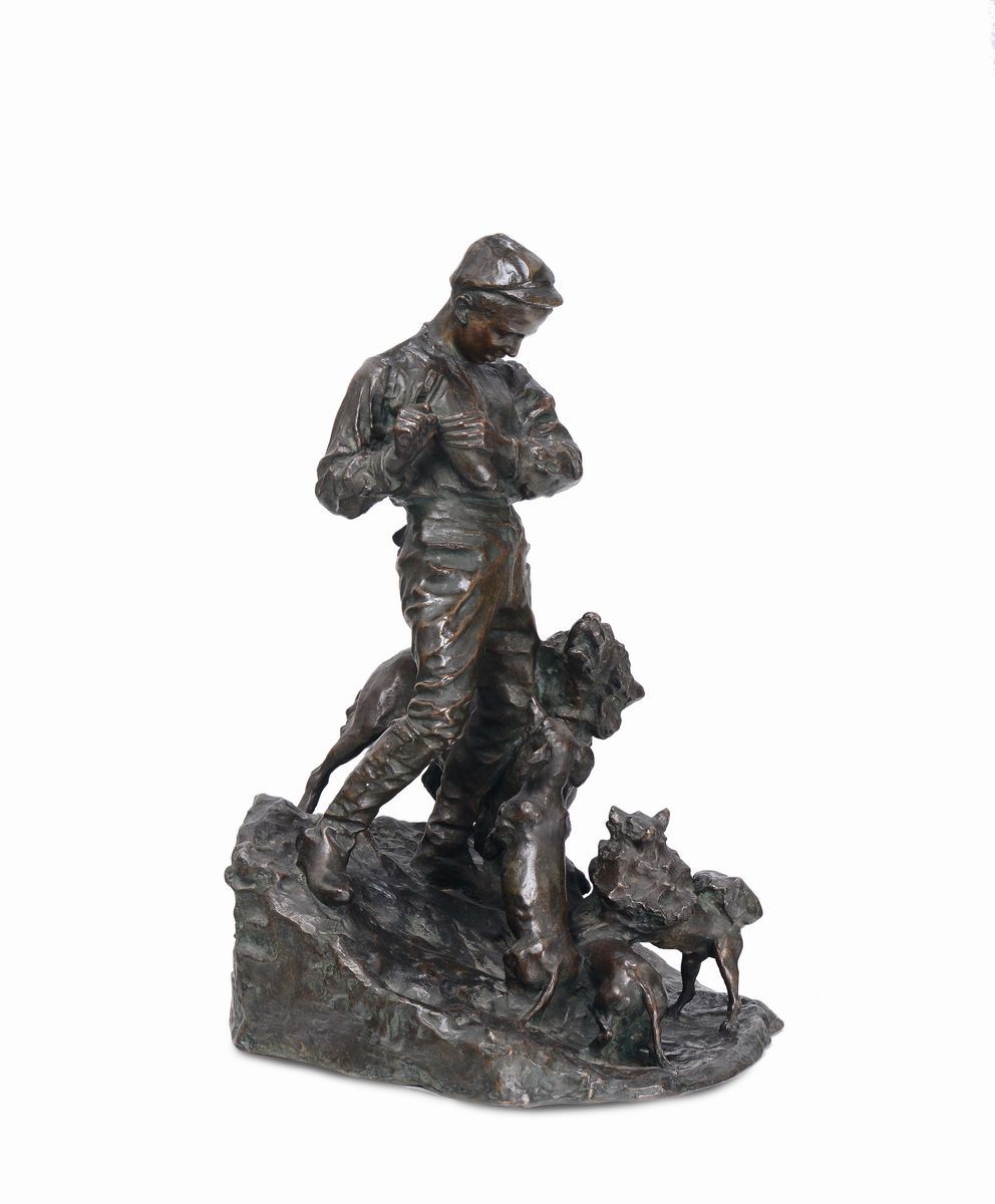 Cesare Biscarra (1866-1943) Giovinetto con cani