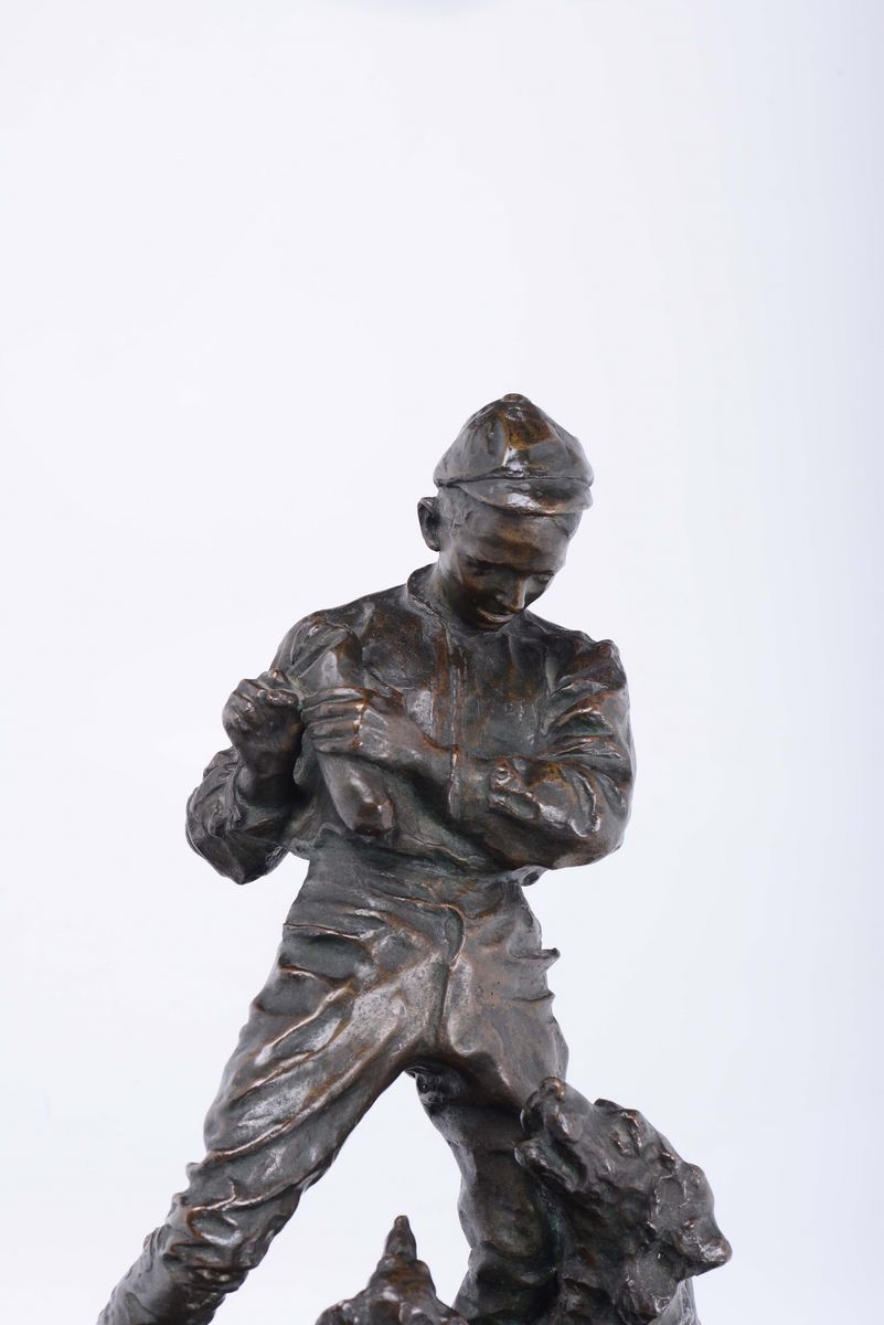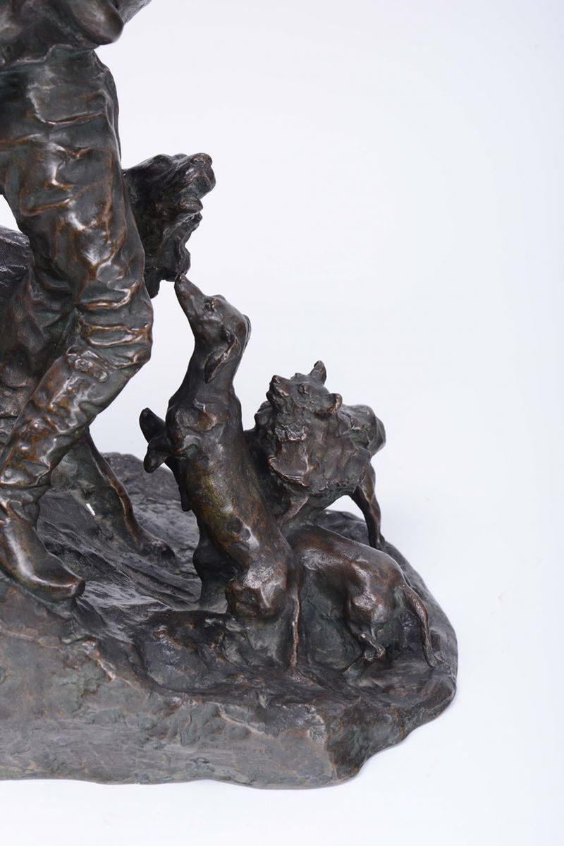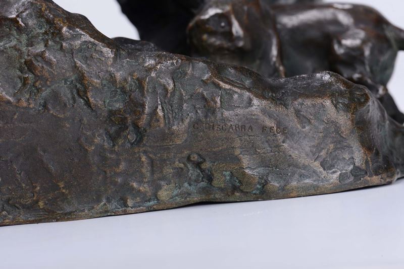 gruppo in bronzo con base naturalistica, firmato, cm 45x30x45