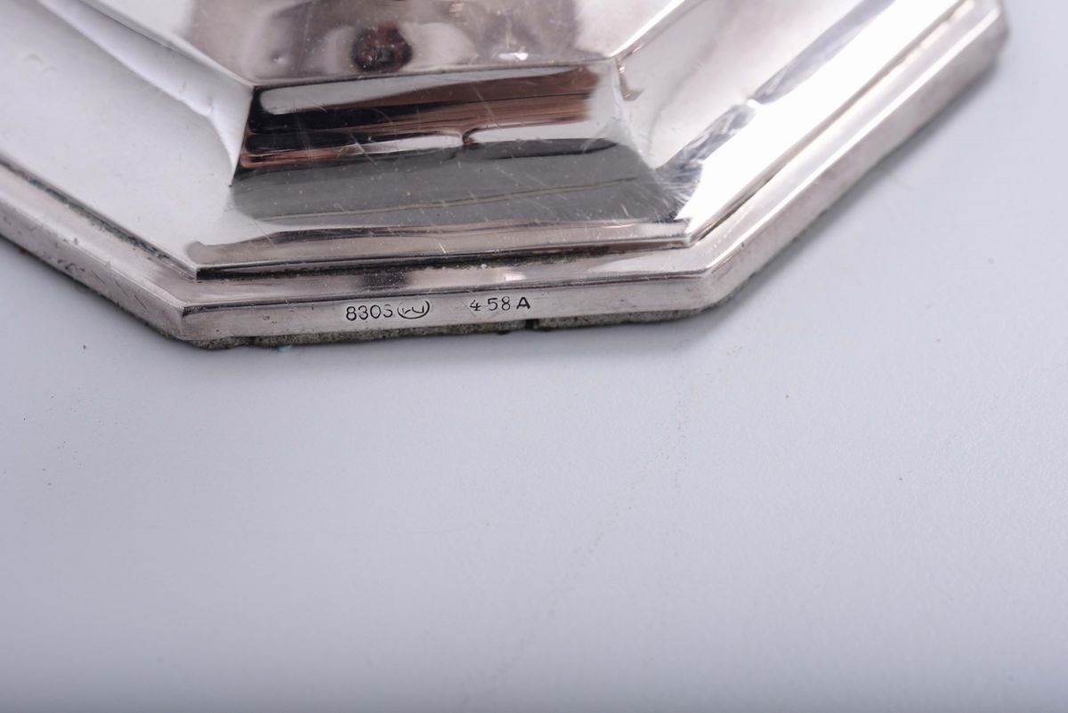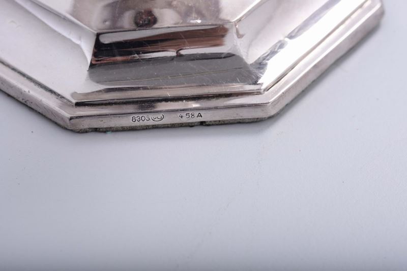 Coppia di candelieri in argento, inizio XX secolo
