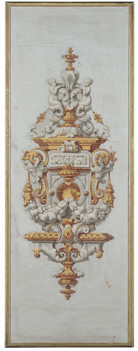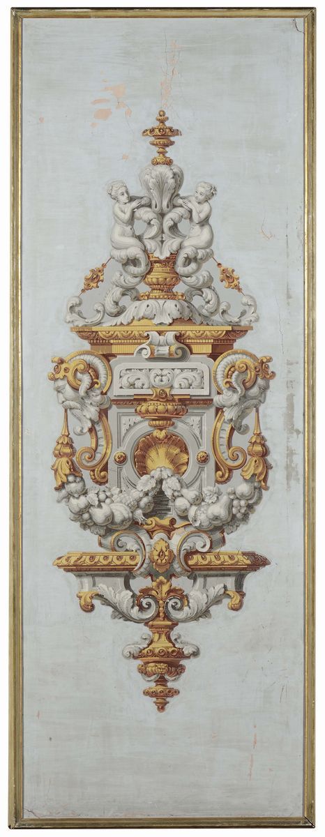 Coppia di tempere su tela con fregi ornamentali, XVIII-XIX secolo