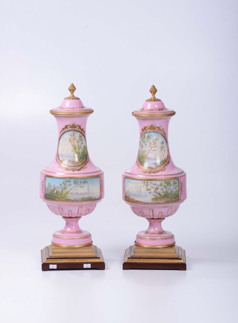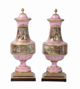 Coppia di vasi con coperchio in porcellana, Sevres XIX secolo
