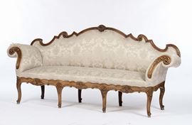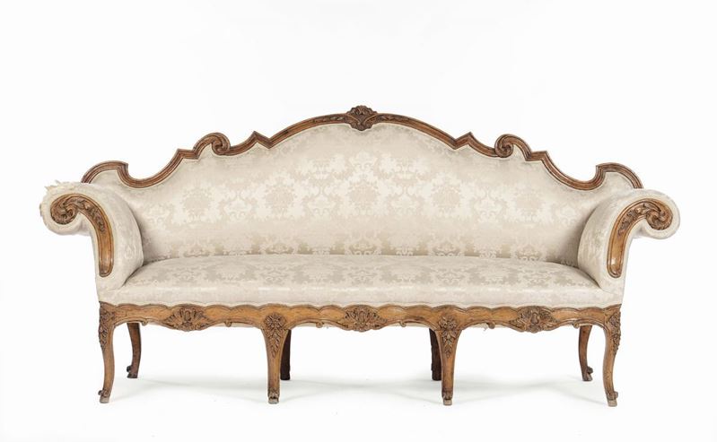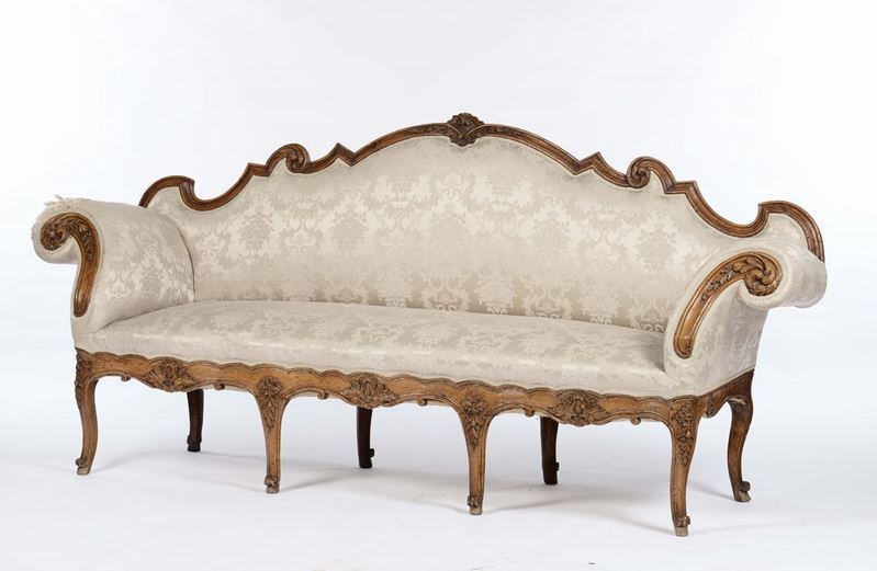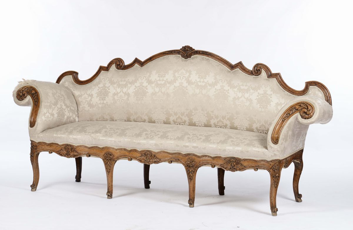 Divano à oreilles in noce intagliato, Lombardo-Veneto, XVIII Secolo